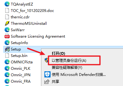 3.选中“Setup”安装程序,右键选择“以管理员身份运行”
