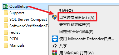 2.选中 “QualSetup”安装程序,右键选择“以管理员身份运行”