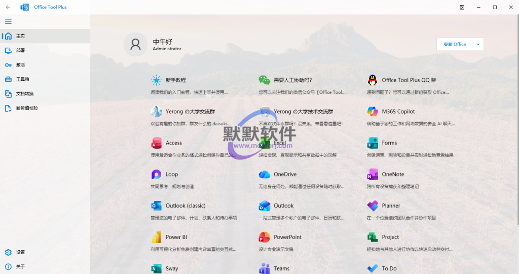 工具箱,重置 Office 设置、修复 Office 问题Office Tool Plus,批量文档格式转换(Word/Excel/PowerPoint)Office Tool Plus,查看 Office 信息、管理更新通道