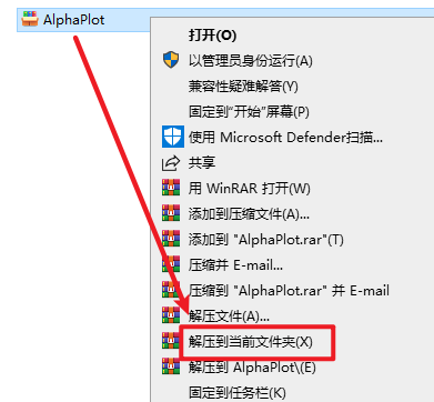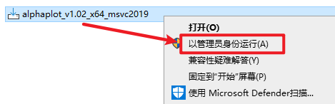 2.打开解压好的安装包,选中“alphaplot…”,右键选择“以管理员身份运行”