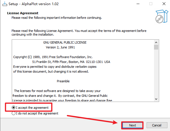 4.勾选“I accept…”,点击“Next”
