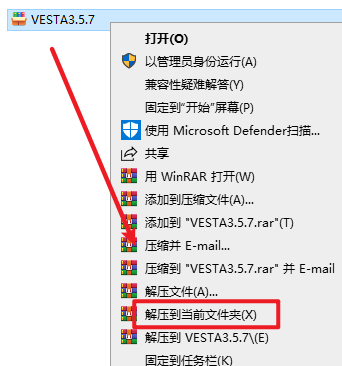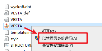 2.打开解压好的文件夹,找打并选中“VESTA”,右键选择“以管理员身份运行