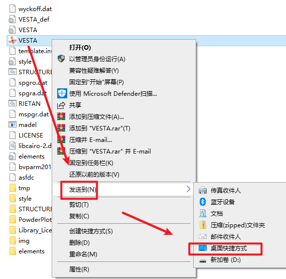 4.回到安装包,选中“VESTA”,右键选择” 发送到桌面快捷方式
