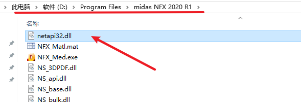 13.返回安装文件夹,依次打开“Crack——midas NFX 2020 R1”文件夹,复制 ”netapi32.dll“文件