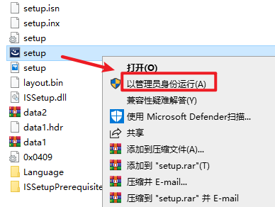 3.选中“Setup”右键选择“以管理员身份运行”