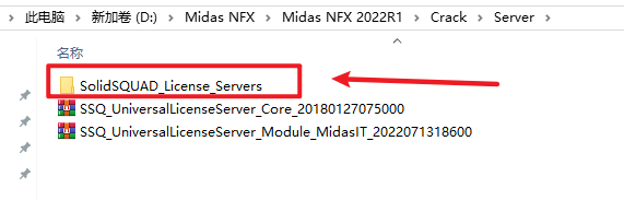 13.返回安装文件夹,依次打开“Crack——Server”文件夹,复制 ”SolidSQUAD_License_Servers“文件