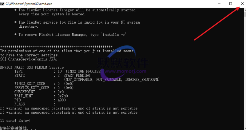 16.提示“ChangeServiceConfig 成功“,点击右上角的关闭