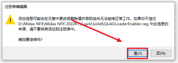 20.再次返回“Crack”文件夹,双击“SolidSQUADLoaderEnabler.reg”注册表文件