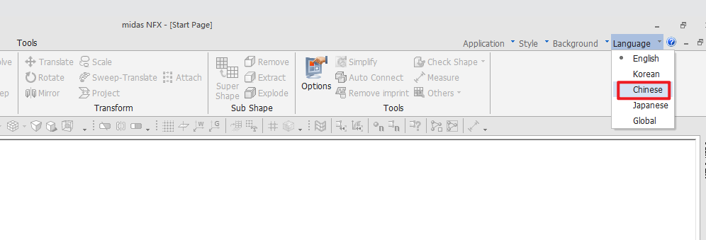 24.点击主界面右上角“Language“,点击”Chinese”