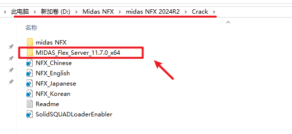 2.打开刚刚解压的文件夹,双击打开“Crack”文件夹,复制 ”MIDAS_Flex_Server_11.7.0_x64“文件夹
