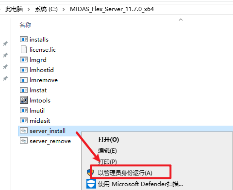 4.打开粘贴过来的文件夹,选中“server_install.bat”右键选择“以管理员身份运行”