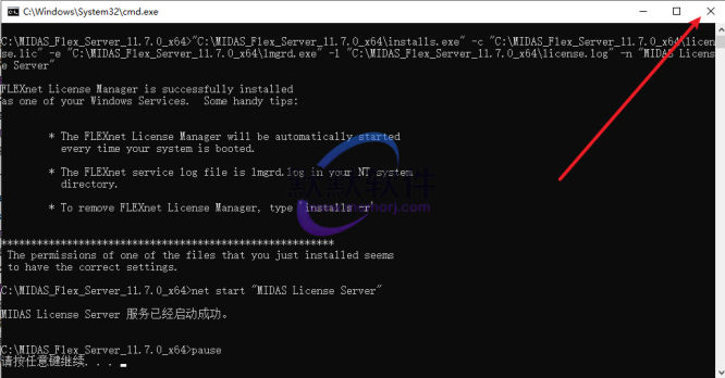5.提示“服务已经启动成功“,点击右上角的关闭