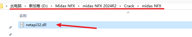 18.返回安装文件夹,依次打开“Crack——midas NFX”文件夹,复制 ”netapi32.dll“文件