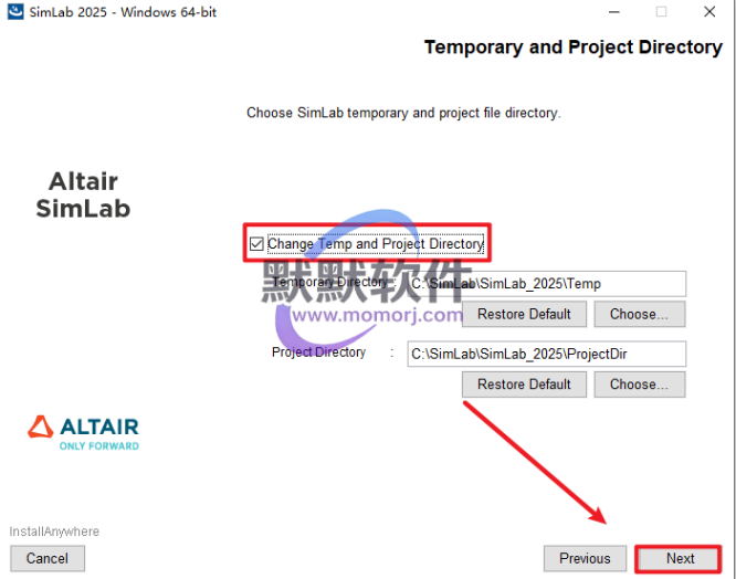 17.指定Temp文件夹和工程文件夹的默认位置,点击“Next”