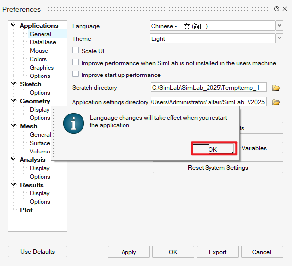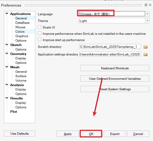 27.Language选择“Chinese – 中文(简体)”,点击 “OK”
