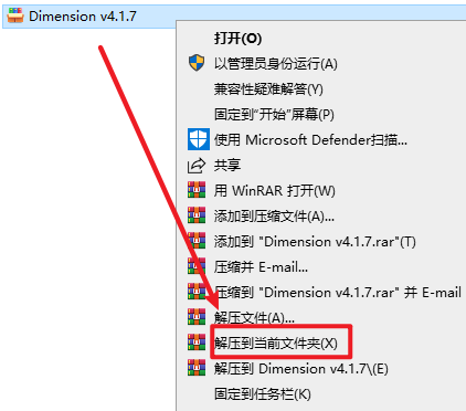 1.选中下载好的按照包,右键选择“解压到当前文件夹”