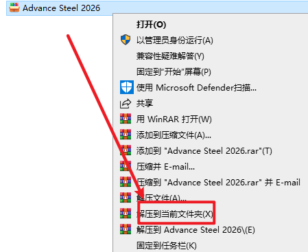 1.选中下载的安装包,右键选择“解压到当前文件夹”