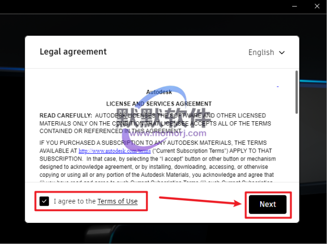 3.勾选“I agree to the Terms of Use”,点击“Next”