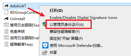 7.返回安装文件夹,双击打开“Crack”文件夹,选中“AdskUAT”文件,右键选择“以管理员身份运行”