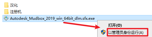 “Autodesk_Mudbox_2019_win_64bit_dlm.sfx.exe”右键选择“以管理员身份运行”