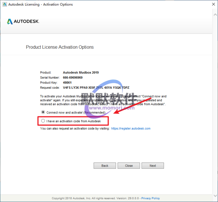 14.选择“I have an activation code from Autodesk”
