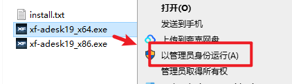 15.返回安装文件夹,双击打开“注册机”文件夹,找到并选中“xf-adesk19_x64.exe”,右键选择“以管理员身份运行”
