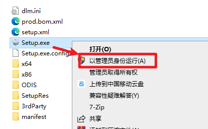 3.在打开的文件夹,选中“Setup”安装程序,右键选择“以管理员身份运行”