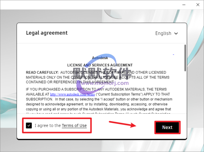 4.勾选“I agree to the Terms of Use”,点击“Next”