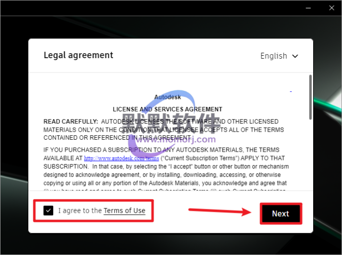 3.勾选“I agree to the Terms of Use”,点击“Next”