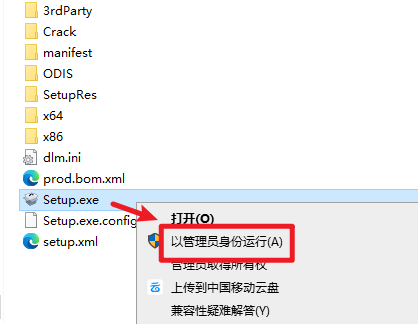 2.打开刚刚解压的文件夹,双击打开“Setup”文件夹,选中“Setup”右键选择“以管理员身份运行”