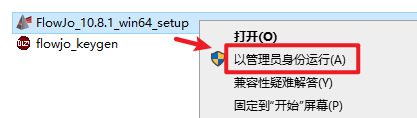 2.选中”FlowJo_10.8.1_win64_setup”安装程序,右键选择“以管理员身份运行”