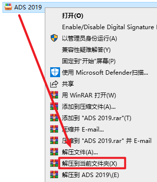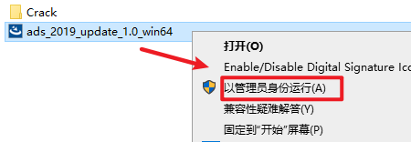 2.打开刚刚解压的文件夹,选中“ADS 2019 Update 1.0”右键选择“以管理员身份运行”