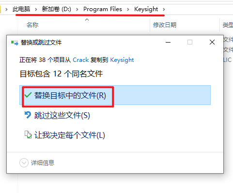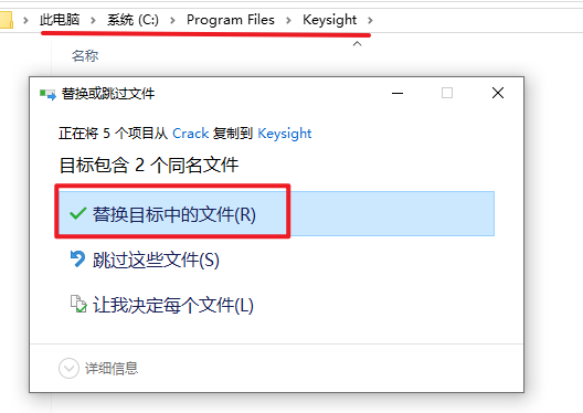 22.粘贴复制的文件到该路径下,选择“替换目标中的文件”
