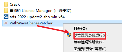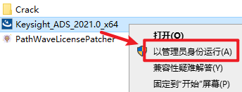 15.返回安装文件夹,选中“PathWaveLicensePatcher”文件,右键选择“以管理员身份运行”