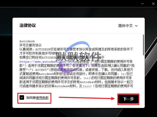 3.勾选“我同意…”,点击“下一步”