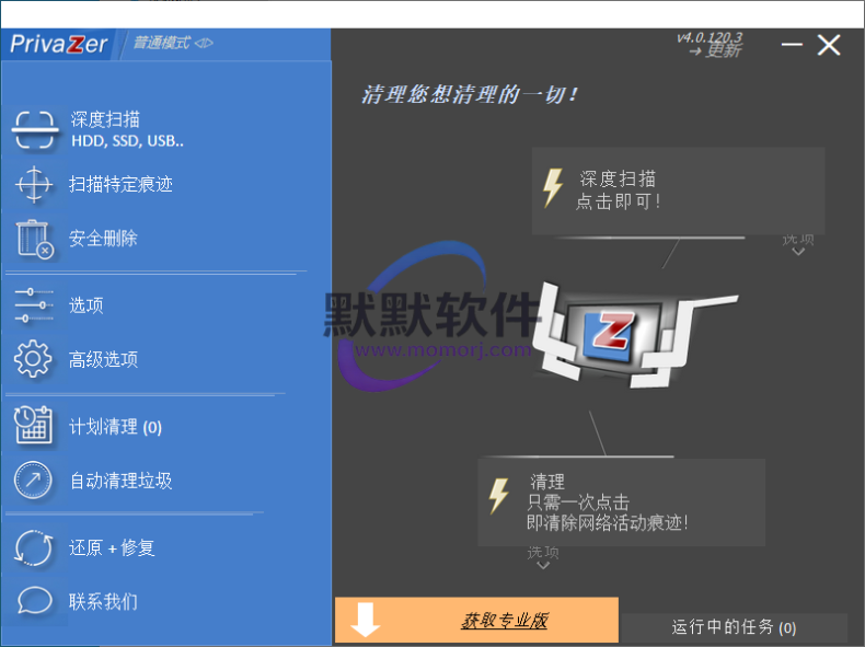 高级隐私保护,自动清理:可设开机、关机、定时自动清理,无痕模式:清理后不留任何日志,理前自动创建还原点,安全不翻车