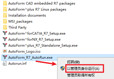 2.打开刚刚解压的文件夹,双击打开“Setup”文件夹,选中“AutoForm_R7_AutoRun”右键选择“以管理员身份运行”