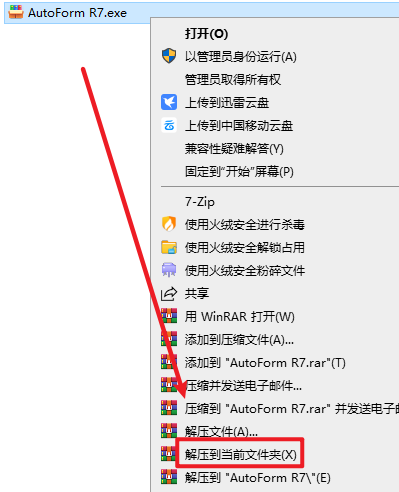 1.选中下载的安装包,然后右键选择“解压到当前文件夹”