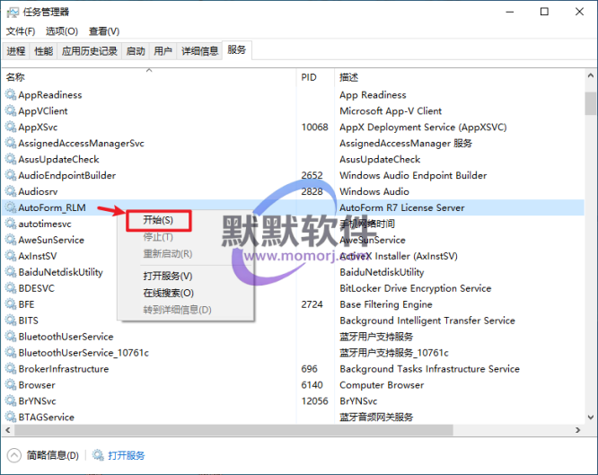 19.返回任务管理器,选中“AutoForm_RLM”选项右键选择“开始“