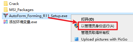 2.打开刚刚解压的文件夹,选中“AutoForm_Forming_R11_Setup”文件,右键选择“以管理员身份运行”