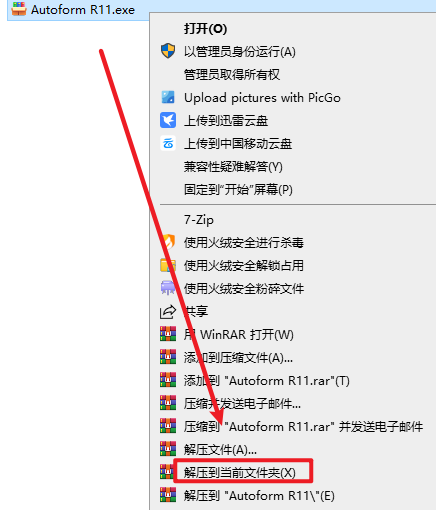 1.选中下载的安装包,然后右键选择“解压到当前文件夹”