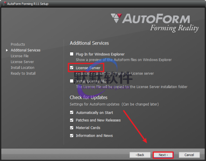 7.勾选“License Server”,点击“Next”
