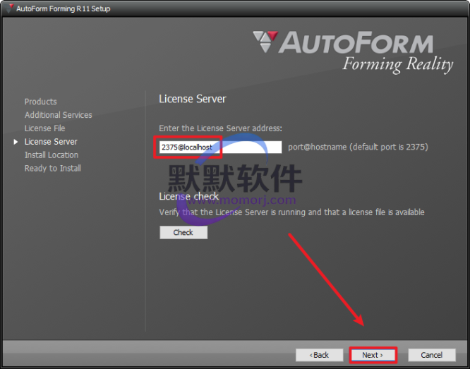 8.License server填写:2375@localhost,点击“Next”