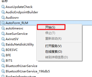 17.返回任务管理器,选中“AutoForm_RLM”选项右键选择“开始“