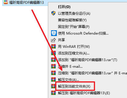 1.选中下载的安装包,然后右键选择“解压到当前文件夹”