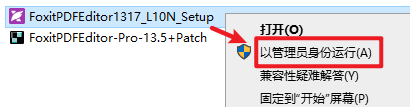 2.打开刚刚解压的文件夹,选中“FoxitPDFEditor20231_L10N_Setup”文件,右键选择“以管理员身份运行”