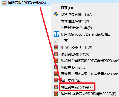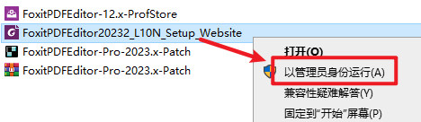 2.打开刚刚解压的文件夹,选中“FoxitPDFEditor20232_L10N_Setup_Website”文件,右键选择“以管理员身份运行”