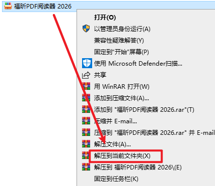 2.打开刚刚解压的文件夹,找到并选中”FoxitPDFReader20261_L10N_Setup_x64”右键选择“以管理员身份运行”