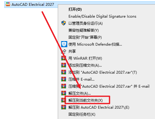 1.选中下载的安装包,然后右键选择“解压到当前文件夹”