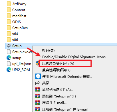 2.打开刚刚解压的文件夹,双击打开“Setup”文件夹,选中“Setup”安装程序,右键选择“以管理员身份运行”